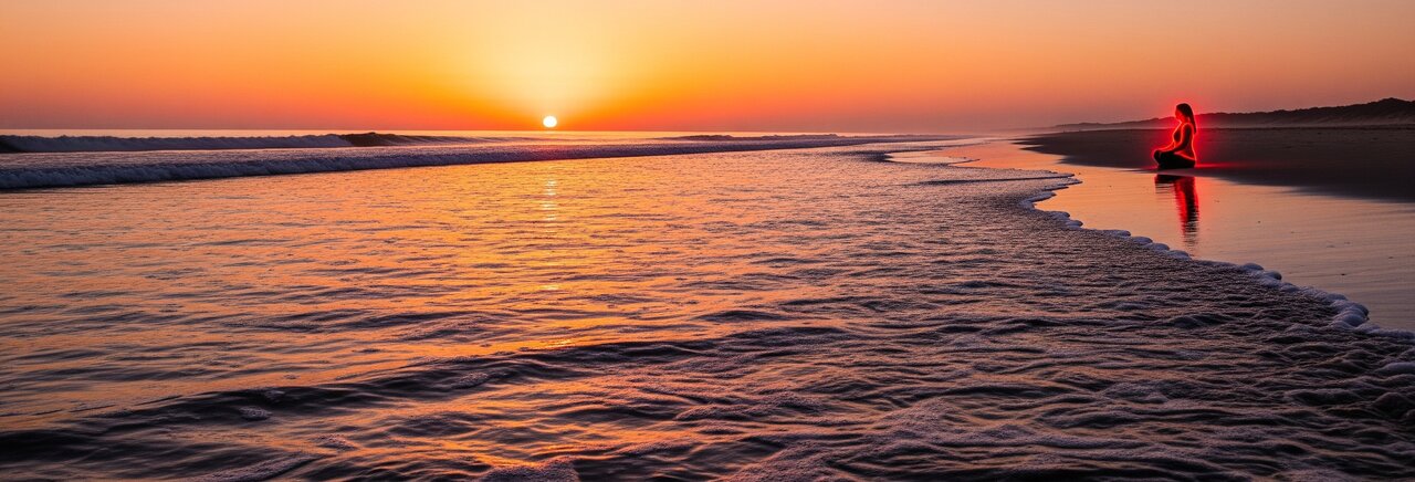 Immerse yourself in this extended healing meditation that combines red light therapy with a transformative journey to a pristine beach sanctuary at dawn. This comprehensive audio experience guides you through deep relaxation and powerful visualization techniques while therapeutic red light penetrates your skin, reducing inflammation, balancing oil production, and activating cellular renewal processes for profound skin transformation that continues long after your session ends.